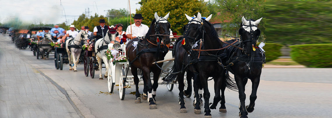 Esküvői lovasszolgáltatásainkat ajánljuk minden kedves házasulandónak, aki a jeles eseményt lovas látványossággal szeretné még feledhetetlenebbé tenni. Lehetőség van lovasbemutató szervezésére ( akár éjszakai fáklyás lovasbemutatóra is) a násznépnek vagy éppen lovaskocsis felvonulásra. Esküvői hintót is biztosítunk igény szerint. Érdekes esemény lehet, az éjszakai menyasszonyszöktetés lóval.