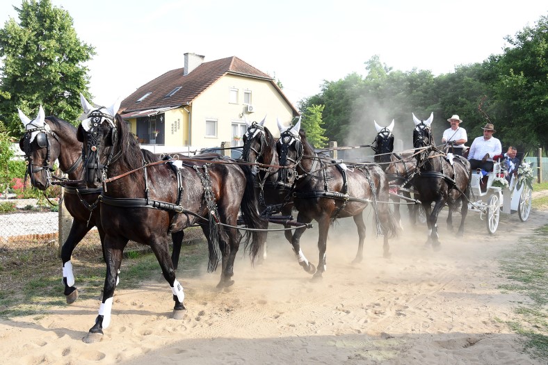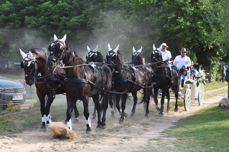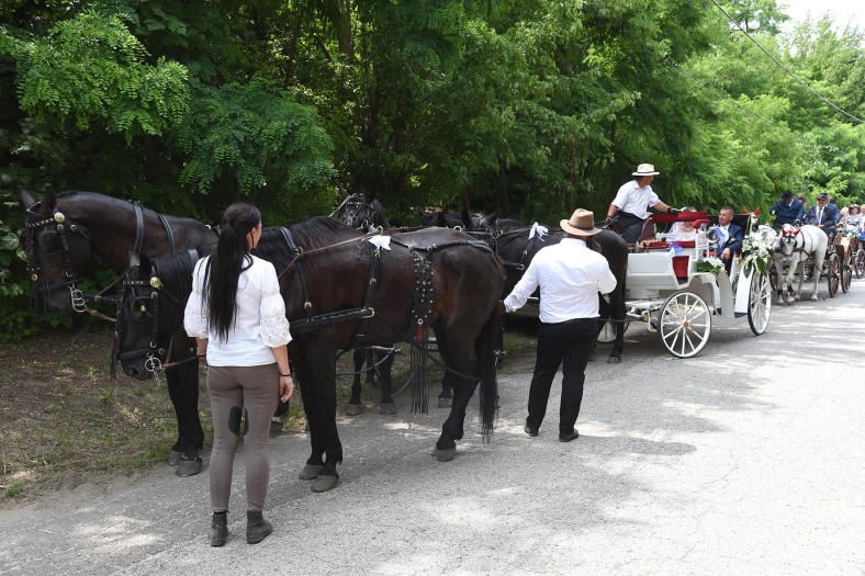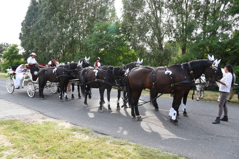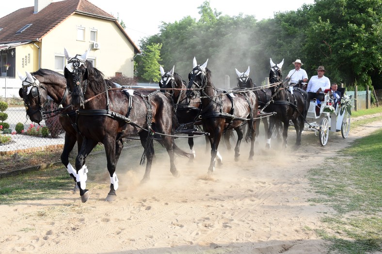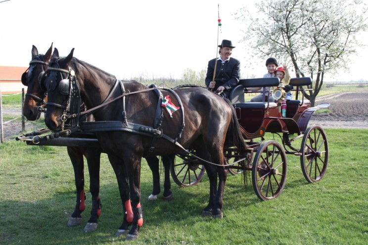 Esküvői lovasszolgáltatásaink keretében az előre megrendelt esküvői hintót a rendezvény helyszínére szállítjuk. A lovashintós fotózáshoz lehetőség van már a rendezvény előttre kérni a hintót, ezáltal több idő marad a fotós részére a hintó esetleges beállítására, amennyiben szükséges. A esküvői lovas nászmenet megrendelése esetén a násznépet lovaskocsikkal szállítjuk a templomba vagy éppen a vacsora helyszínére. A lovaskocsik 8-10 fő egyidejű szállítására alkalmasak.