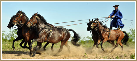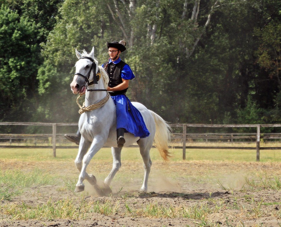 A ló hátán állás: Ez segíttette a betyárokat abban, hogy a magas fűben, a nádas mögül, minél messzebbre láthassanak el a pusztában. | ![]() |